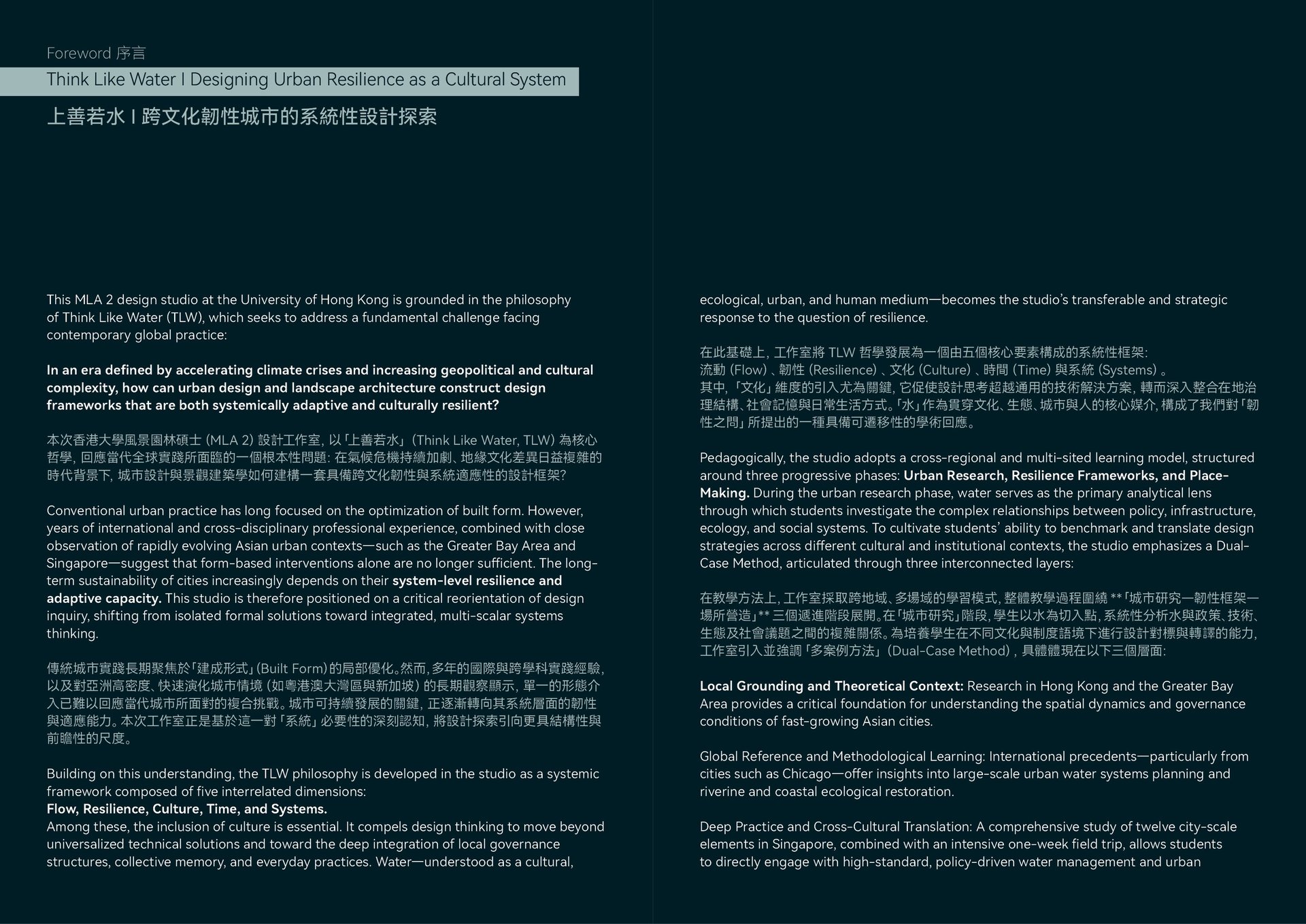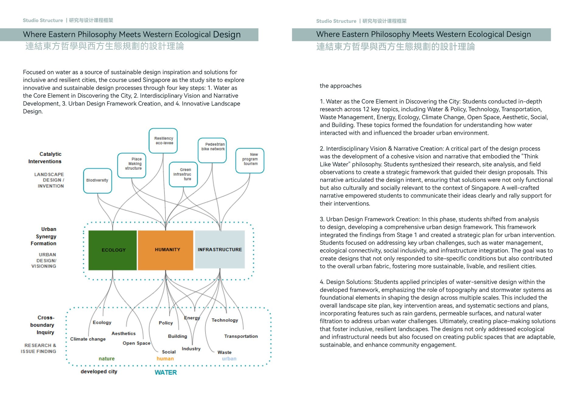 This studio embraced a holistic approach, bridging urban design and landscape architecture under the "Think Like Water" philosophy, encouraging students to comprehensively explore urban landscapes.